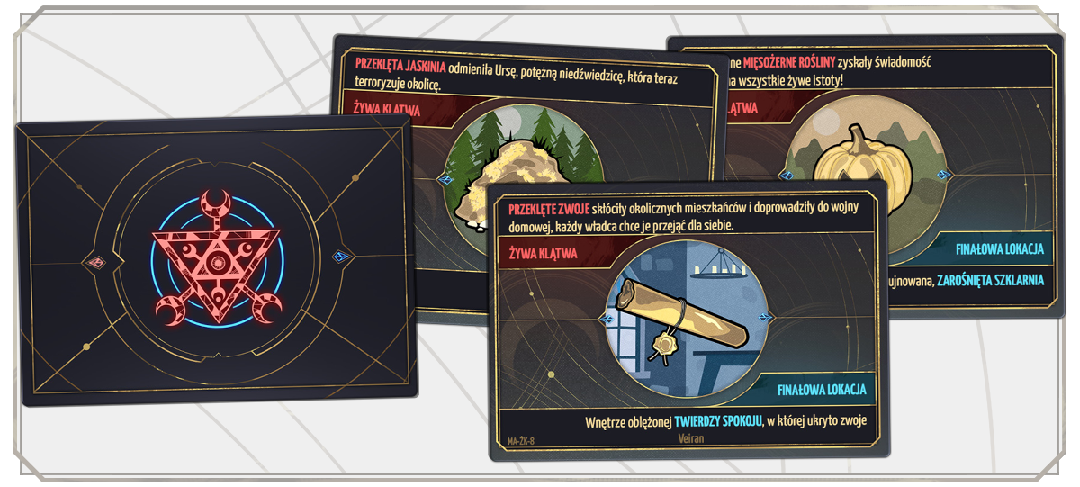 Tak w miastach, jak i w dziczy, odnajdziecie Żywe Klątwy. Będą to osoby, miejsca lub przedmioty wypaczone przez czarną magię. Każde z nich ma swoją wolę i motywacje, które można zrozumieć, ale ich działanie niszczy ten świat i muszą zostać powstrzymane za wszelką cenę.
